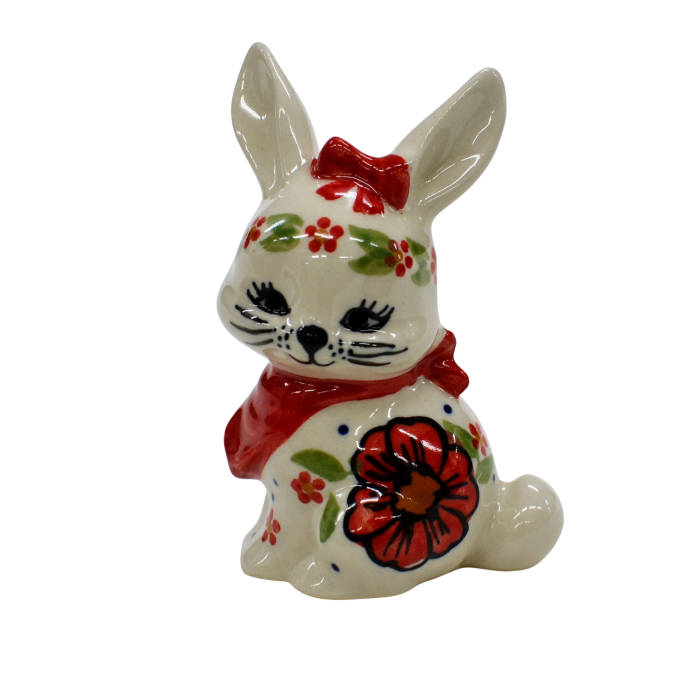 Wspaniały pomysł na wielkanocne i wiosenne ozdoby domu i mieszkania. Królik ceramiczny, ręcznie malowany w oryginalne wzory ceramiki bolesławieckiej.