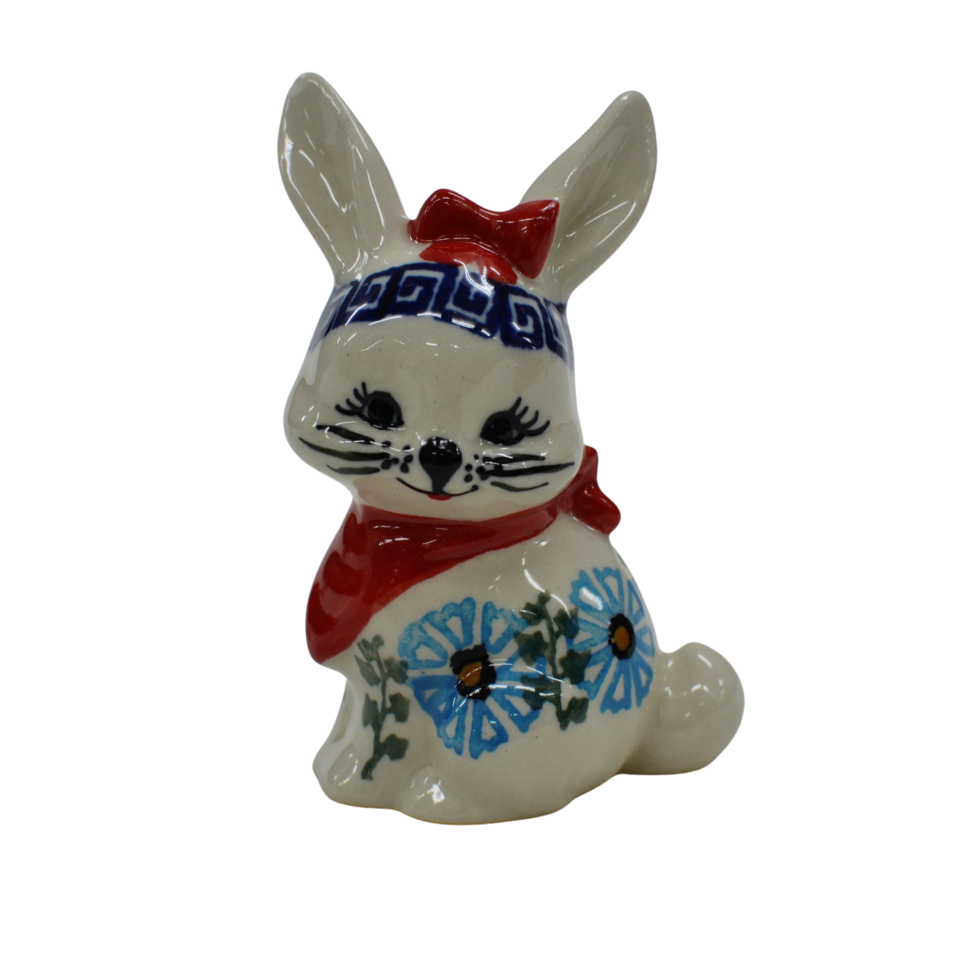 Wspaniały pomysł na wielkanocne i wiosenne ozdoby domu i mieszkania. Królik ceramiczny, ręcznie malowany w oryginalne wzory ceramiki bolesławieckiej.
