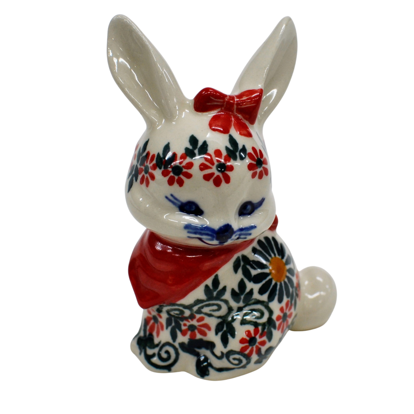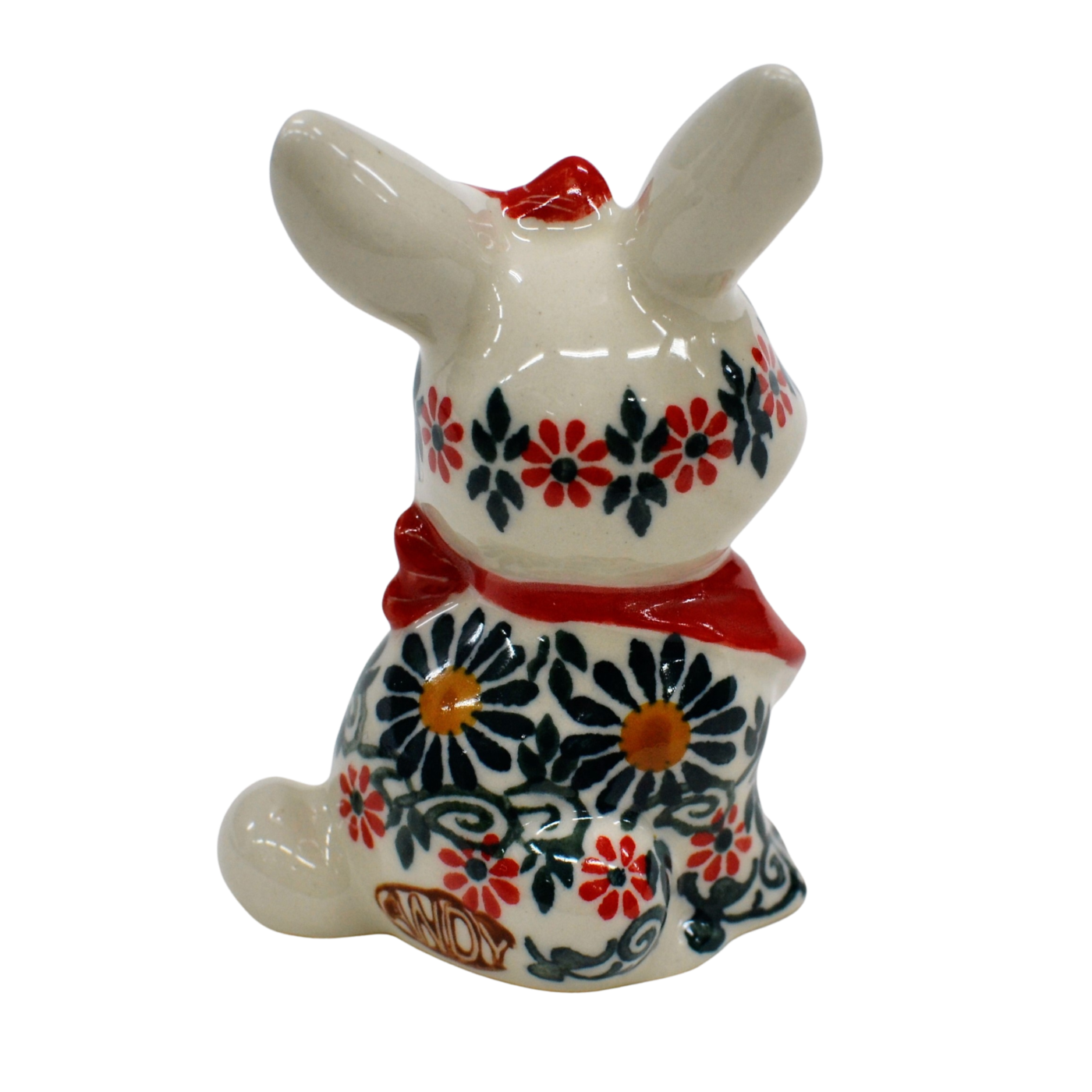 Wspaniały pomysł na wielkanocne i wiosenne ozdoby domu i mieszkania. Królik ceramiczny, ręcznie malowany w oryginalne wzory ceramiki bolesławieckiej.