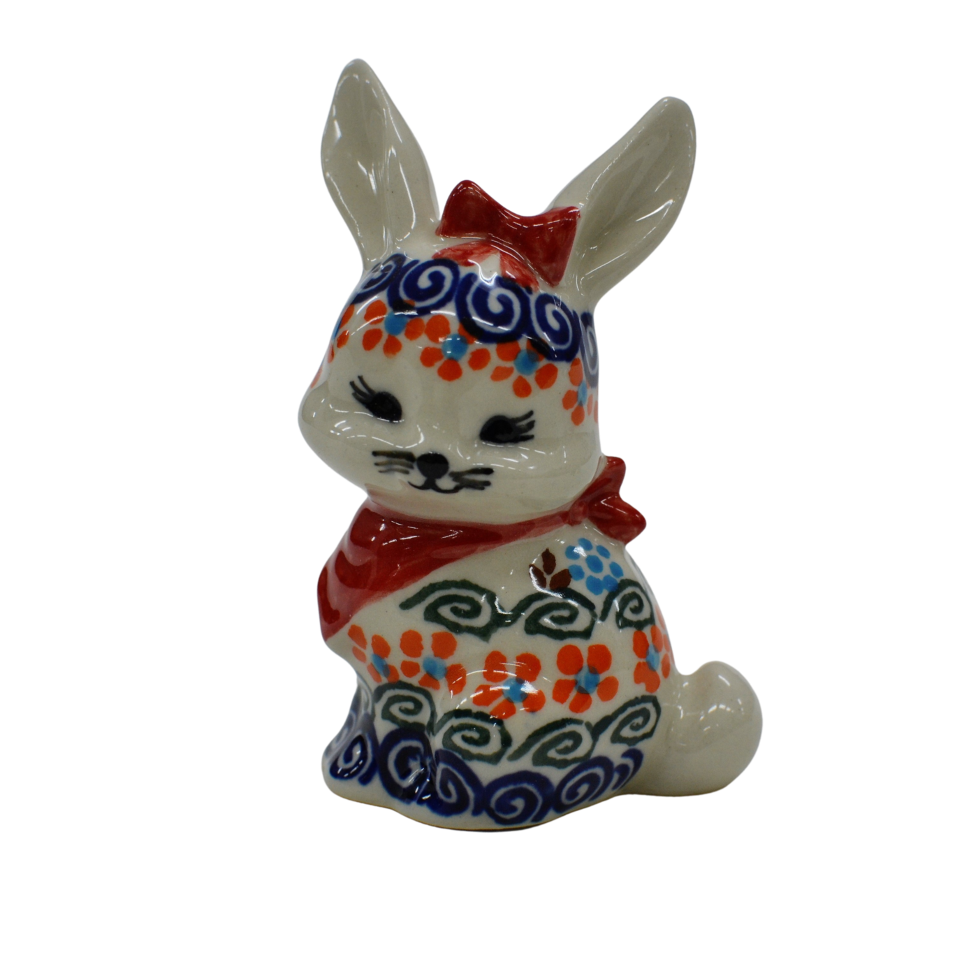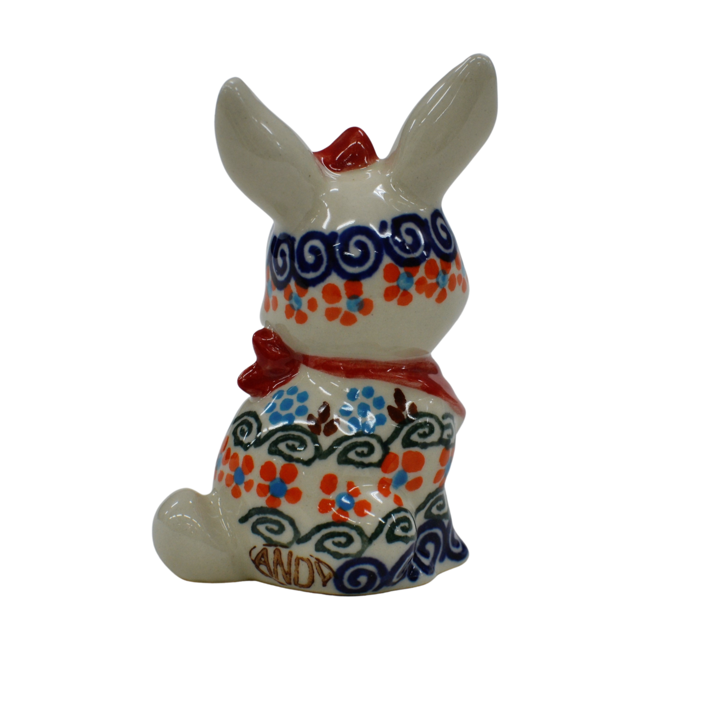 Wspaniały pomysł na wielkanocne i wiosenne ozdoby domu i mieszkania. Królik ceramiczny, ręcznie malowany w oryginalne wzory ceramiki bolesławieckiej.