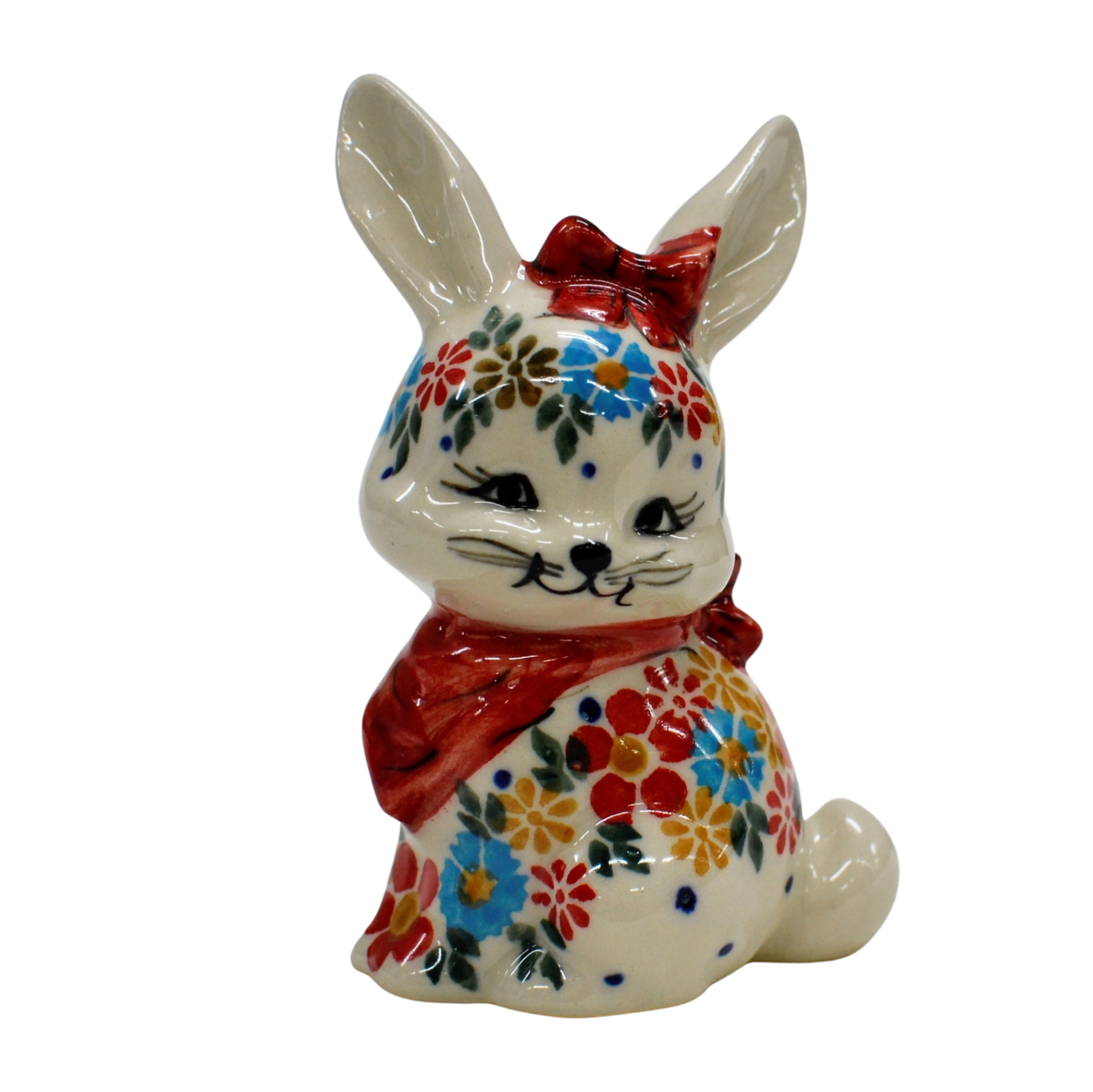 Wspaniały pomysł na wielkanocne i wiosenne ozdoby domu i mieszkania. Królik ceramiczny, ręcznie malowany w oryginalne wzory ceramiki bolesławieckiej.