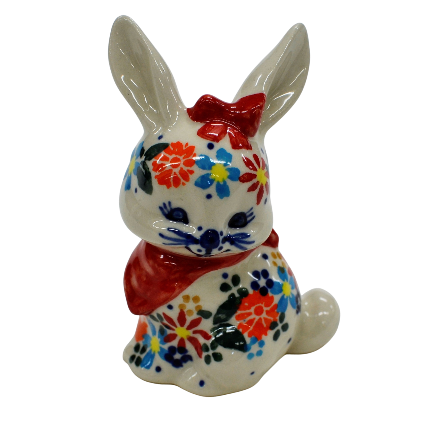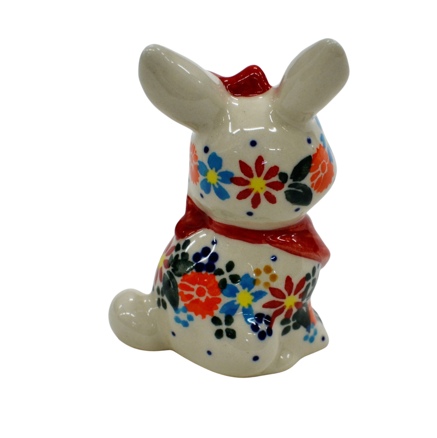 Wspaniały pomysł na wielkanocne i wiosenne ozdoby domu i mieszkania. Królik ceramiczny, ręcznie malowany w oryginalne wzory ceramiki bolesławieckiej.