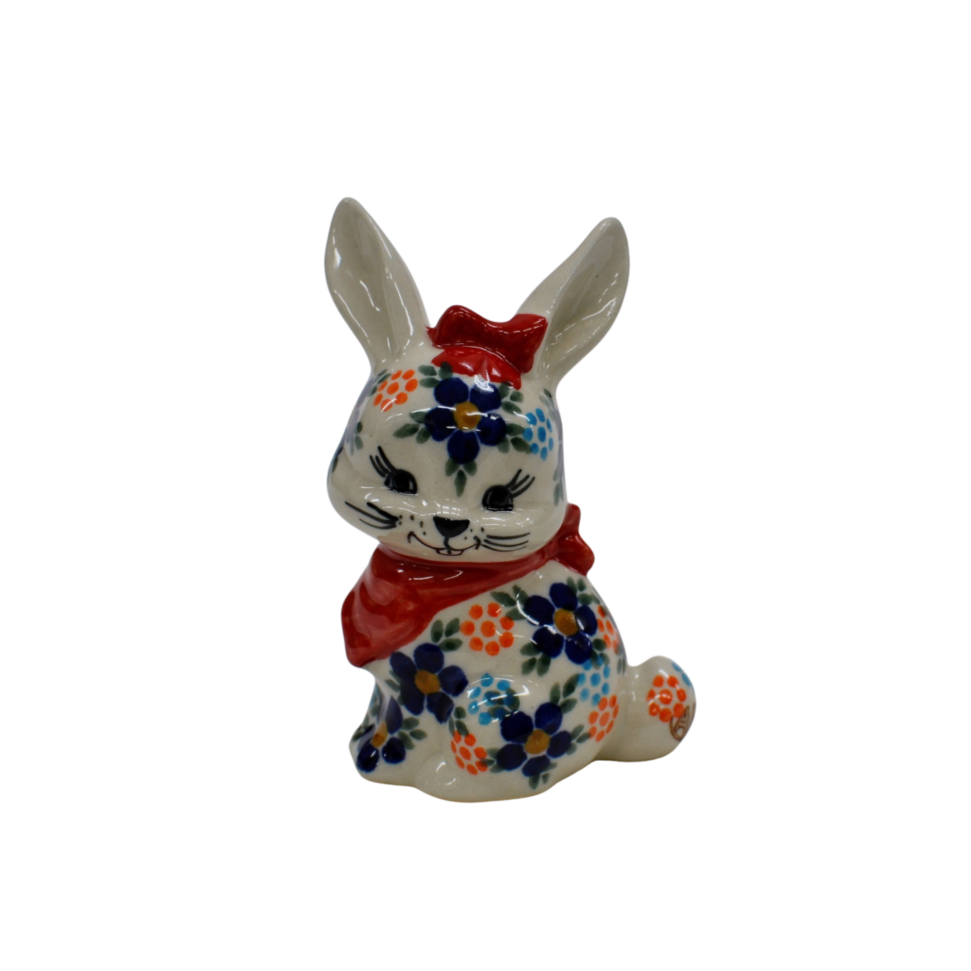 Wspaniały pomysł na wielkanocne i wiosenne ozdoby domu i mieszkania. Królik ceramiczny, ręcznie malowany w oryginalne wzory ceramiki bolesławieckiej.