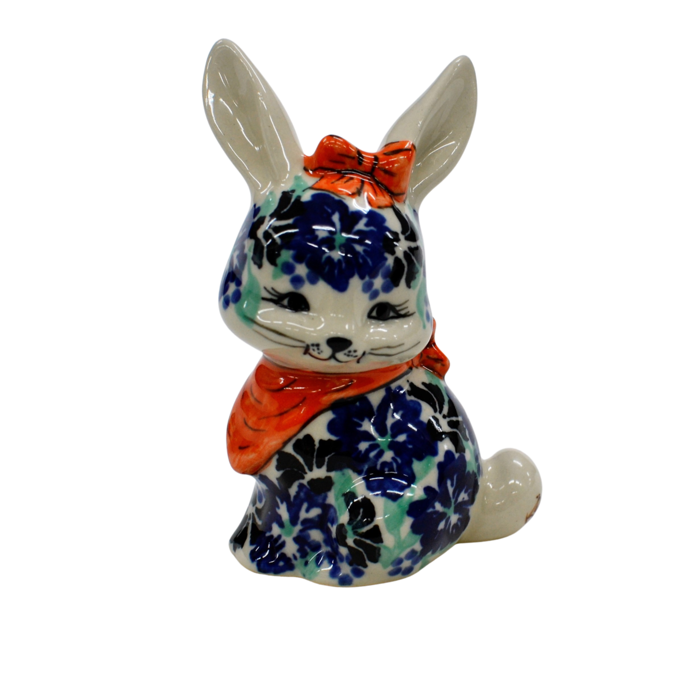 Wspaniały pomysł na wielkanocne i wiosenne ozdoby domu i mieszkania. Królik ceramiczny, ręcznie malowany w oryginalne wzory ceramiki bolesławieckiej.