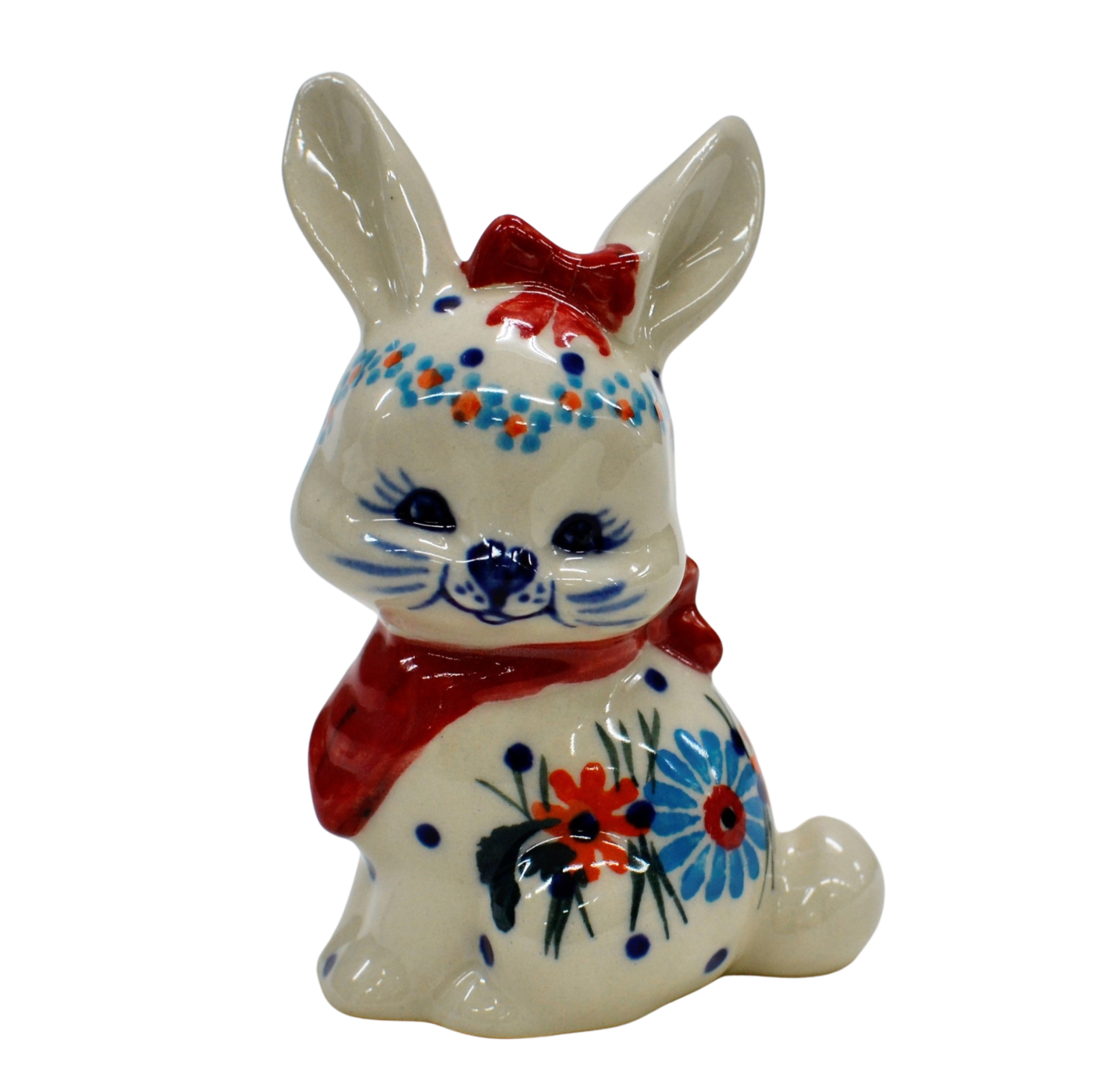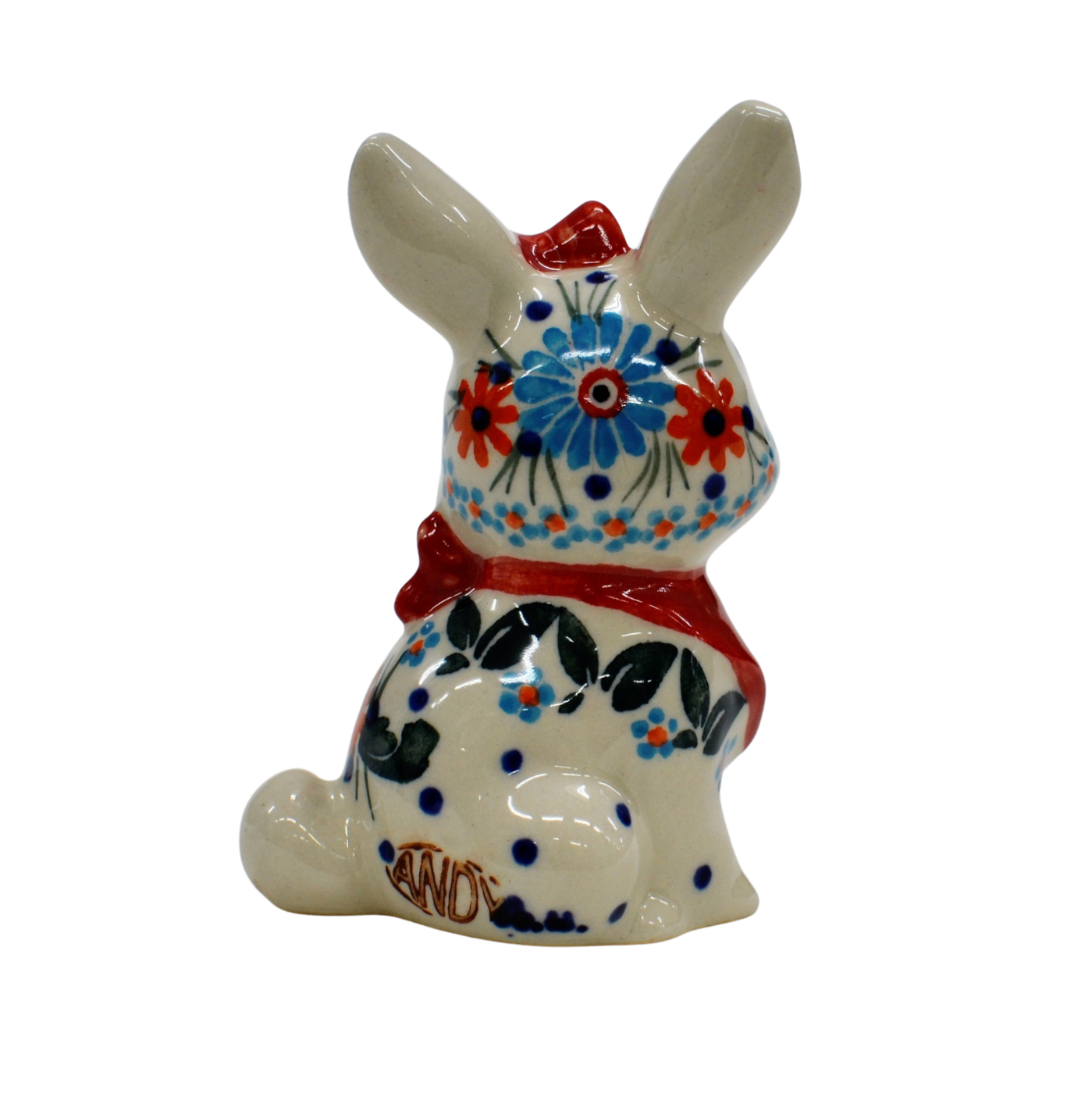 Wspaniały pomysł na wielkanocne i wiosenne ozdoby domu i mieszkania. Królik ceramiczny, ręcznie malowany w oryginalne wzory ceramiki bolesławieckiej.